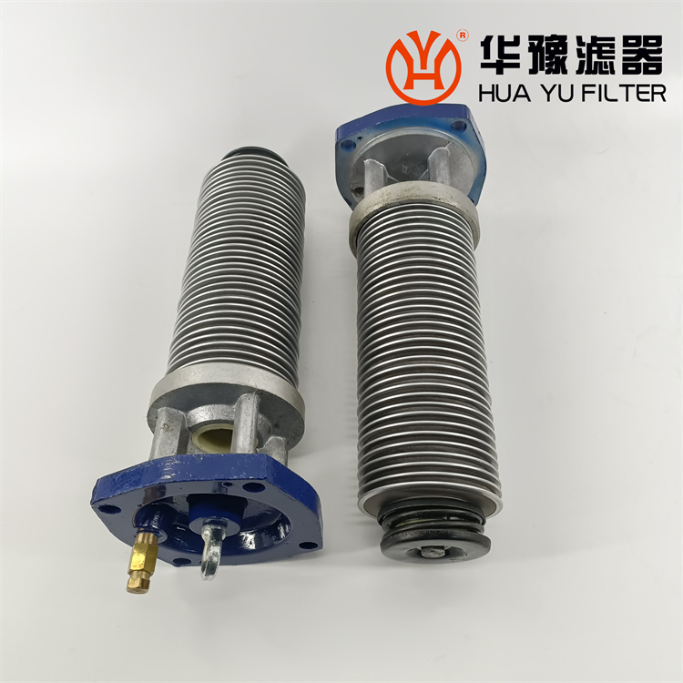 每一濾芯組件由濾器蓋、濾芯套筒、濾片及濾片圈等組成,濾器蓋頂部裝有放氣閥,供排出濾器內(nèi)腔的空氣用。 濾片套在濾芯套筒上,是濾器的主要過濾元件,由濾網(wǎng),支承網(wǎng)及波紋隔盤等組成,濾網(wǎng)的網(wǎng)目數(shù)由用戶根據(jù)需要選用。轉(zhuǎn)換閥體是由鑄鋁鋁合金制成的椎體,與閥孔研磨配合,閥體上鑄有上下兩油道孔,上油道孔一端通濾芯上方油腔,一段通濾器出口,下油道孔一段通濾芯腔,一段通濾器進口,當(dāng)轉(zhuǎn)換閥迅速從一極限位置轉(zhuǎn)至另一極限位置時,閥體將一濾芯腔的通路關(guān)閉,而將另一濾芯腔的通路打開,此時,壓力油從濾器進口流入濾芯腔,經(jīng)濾網(wǎng)過濾后的清潔油經(jīng)上方油腔從出口流出,達到濾清油液的目的。轉(zhuǎn)換閥體軸端頭上的箭頭指向接通的濾芯腔的一邊。